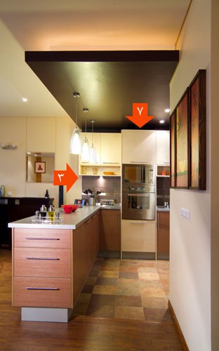 به طور مثال میتوان در انتخاب رنگ یونیتهای زمینی آشپزخانه (ردیف پائینی کابینت) رنگ تیره